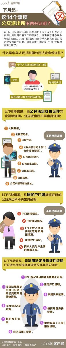 公安部等12個(gè)部門(mén)于近日聯(lián)合出臺(tái)《關(guān)于改進(jìn)和規(guī)范公安派出所出具證明工作的意見(jiàn)》,自2016年9月1日起實(shí)施。12個(gè)部門(mén)還專(zhuān)門(mén)印發(fā)通知,就做好貫徹落實(shí)工作提出明確要求。 《意見(jiàn)》規(guī)定凡是…