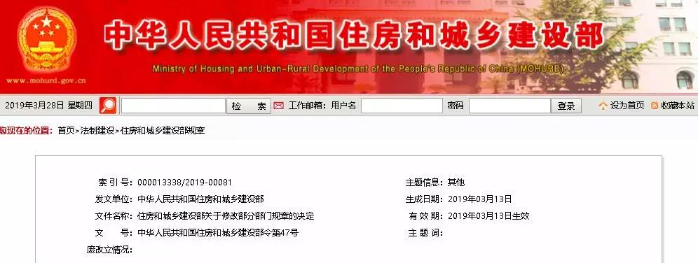 住房和城鄉(xiāng)建設(shè)部關(guān)于修改部分部門規(guī)章的決定《住房和城鄉(xiāng)建設(shè)部關(guān)于修改部分部門規(guī)章的決定》已經(jīng)2019年2月15日第6次部常務(wù)會議審議通過,現(xiàn)予發(fā)布,自發(fā)布之日起施行。住房和城鄉(xiāng)建設(shè)部部…
