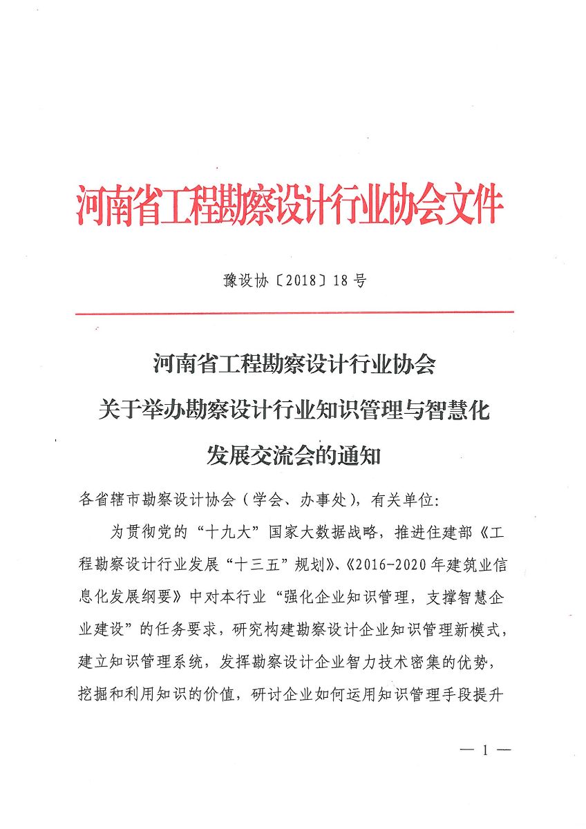 協(xié)會關于舉辦勘察設計行業(yè)知識管理與智慧化發(fā)展交流會的通知