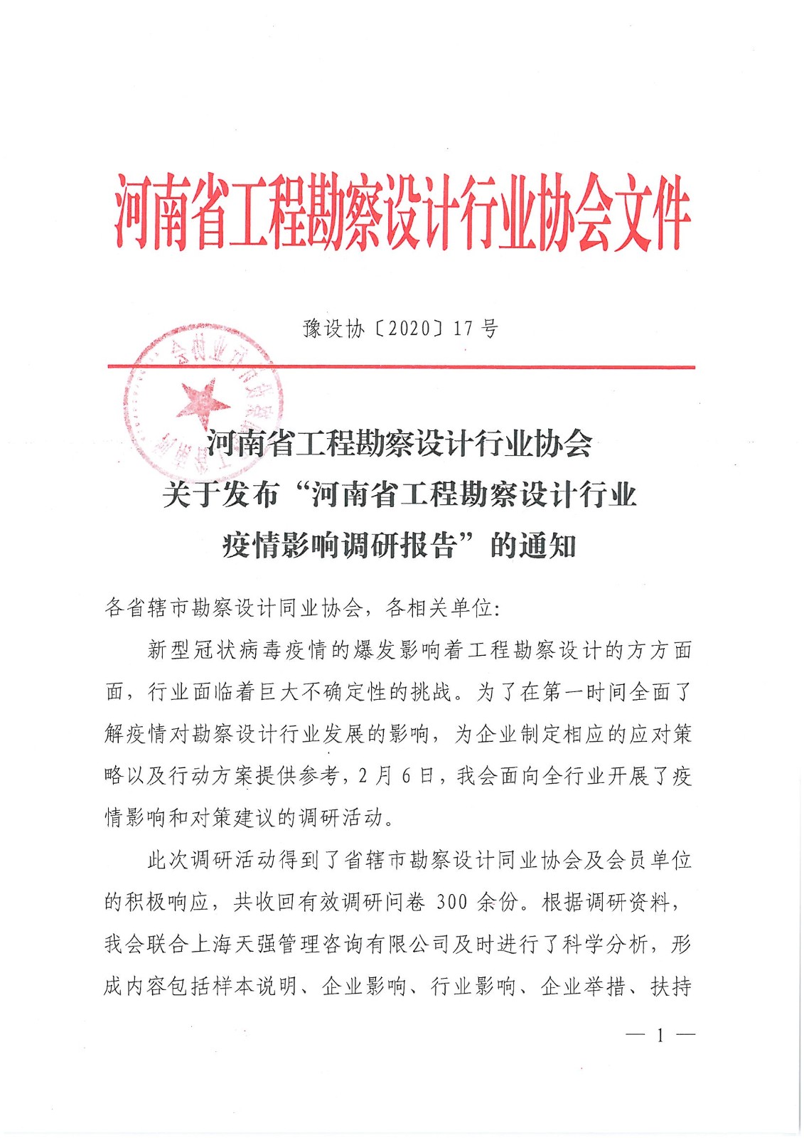 省協(xié)會:關(guān)于發(fā)布“河南省工程勘察設(shè)計行業(yè)疫情影響調(diào)研報告”的通知