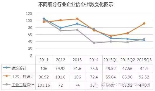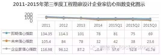 10月27日,上海天強管理咨詢有限公司發(fā)布了行業(yè)首個工程勘察設(shè)計企業(yè)發(fā)展景氣指數(shù)及企業(yè)家信心指數(shù)。根據(jù)此次發(fā)布的數(shù)據(jù),以100為基準(zhǔn),2015年第三季度,行業(yè)內(nèi)企業(yè)發(fā)展景氣指數(shù)跌至66,表明行業(yè)發(fā)展陷入低迷狀態(tài);而企業(yè)家發(fā)展信心指數(shù)已經(jīng)跌至41.8,企業(yè)家對行業(yè)發(fā)展預(yù)期已陷入悲觀狀態(tài)。