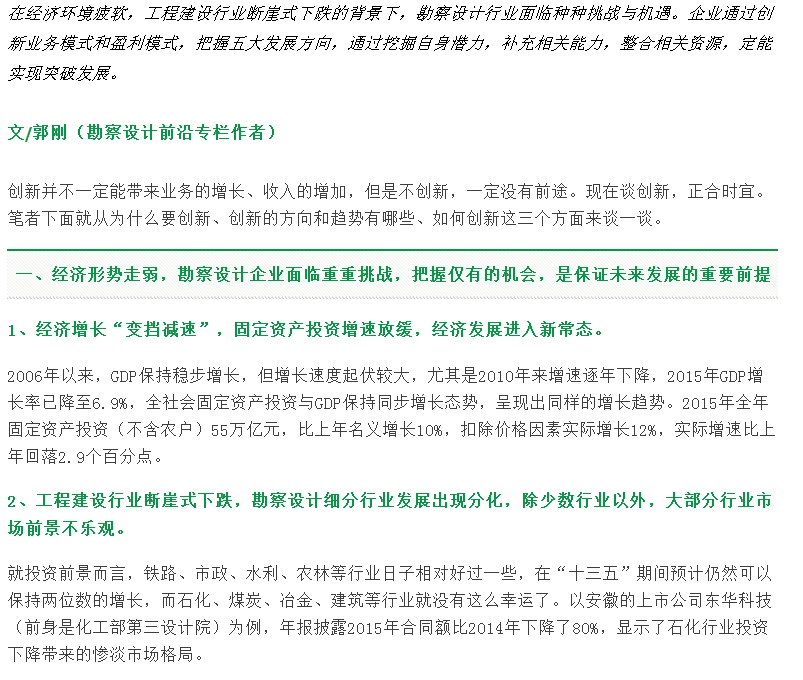 勘察設(shè)計(jì)企業(yè)創(chuàng)新正當(dāng)時(shí)