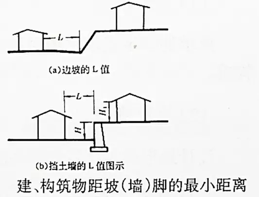 2 、高度大于2m的擋土墻和護(hù)坡的上緣與建筑間水平距離不應(yīng)小于3m,其下緣與建筑間的水平距離不應(yīng)小于2m。
