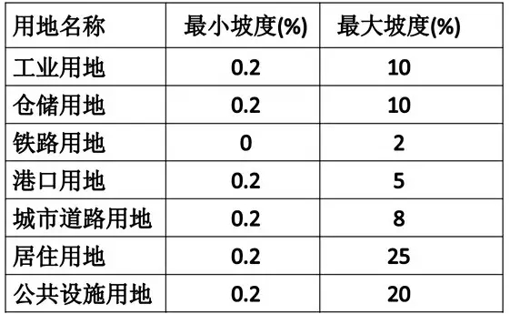 (1)基地地面坡度不應(yīng)小于0.2%,地面坡度大于8%時(shí)宜分成臺(tái)地,臺(tái)地連接處應(yīng)設(shè)擋墻或護(hù)坡;
