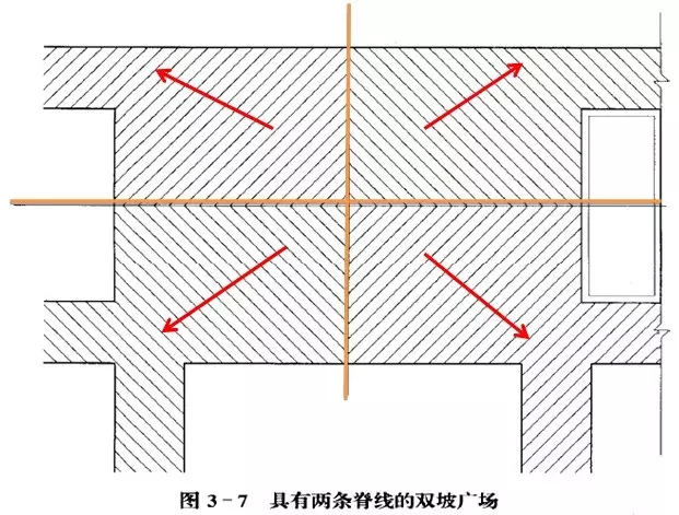 •用箭頭表明地面的排水方向