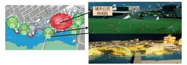 整體規(guī)劃以城市道路分隔,形成城市界面和靠海邊的景觀界面兩大部分;