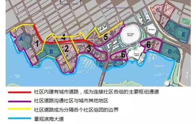(3)城市公共休閑區(qū):在社區(qū)與森林公園之間興建城市公共休閑地帶,包括國家廣場世界最大的氣撐式圓頂體育館、溫哥華新中心圖書館、科學世界中心等,形成區(qū)域標識,建立與城市的聯(lián)系;