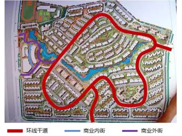 用水軸線和綠軸線將湖面兩邊的住宅、市政文化廣場、風情街區(qū)、會所等有機串聯(lián),只在商業(yè)街區(qū)做開放,并不向住宅內(nèi)部延伸,開放程度非常有限。