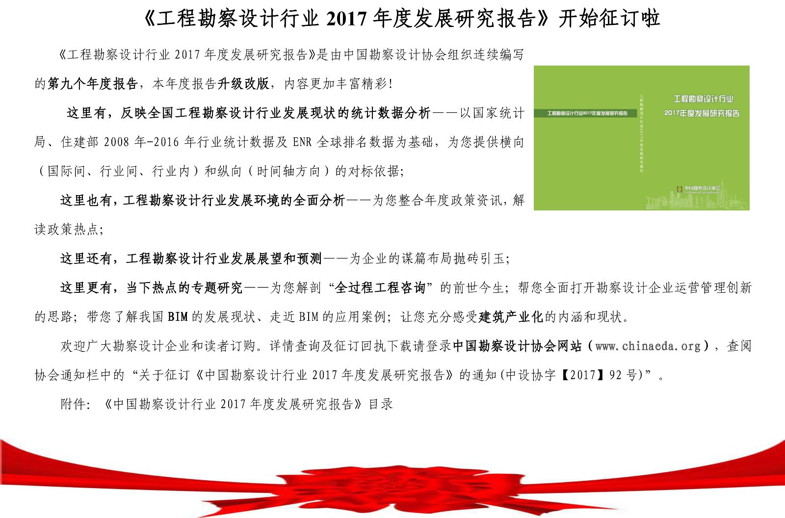 《工程勘察設(shè)計行業(yè)2017年度發(fā)展研究報告》開始征訂啦