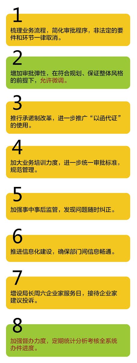 《安排》顯示,天津規(guī)劃局此次審批制度改革將主要包括八方面工作: