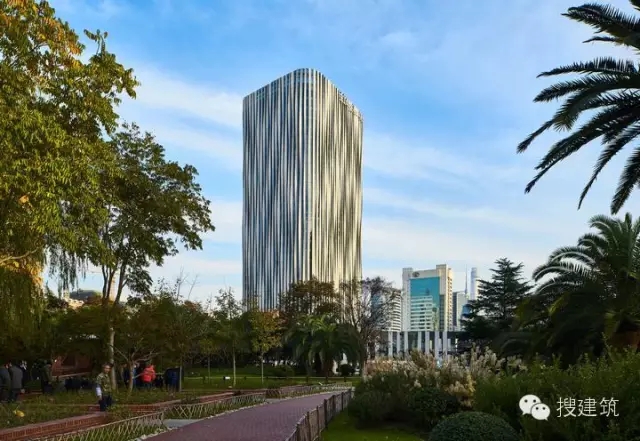 上海市虹口區(qū)海南路10號地塊以不同的手法打破了傳統(tǒng)高層建筑生硬冰冷的形象,建筑采用了隨高度升高而改變形狀的曲線形遮陽系統(tǒng),形成了韻律感十足的建筑表皮。除了曲折的形式,該塔樓還采用了多種綠化設計,例如屋面和裙房屋頂綠化,LOW-E絕緣玻璃面板以及大量的灰水收集系統(tǒng)。