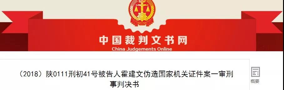 被告人霍建文犯偽造國家機(jī)關(guān)證件罪,判處有期徒刑六個(gè)月,并處罰金200000元。(刑期自判決執(zhí)行之日起計(jì)算。判決執(zhí)行以前先行羈押的,羈押一日折抵刑期一日,即自2017年11月1日起至2018年4月30日止。罰金已繳納。)