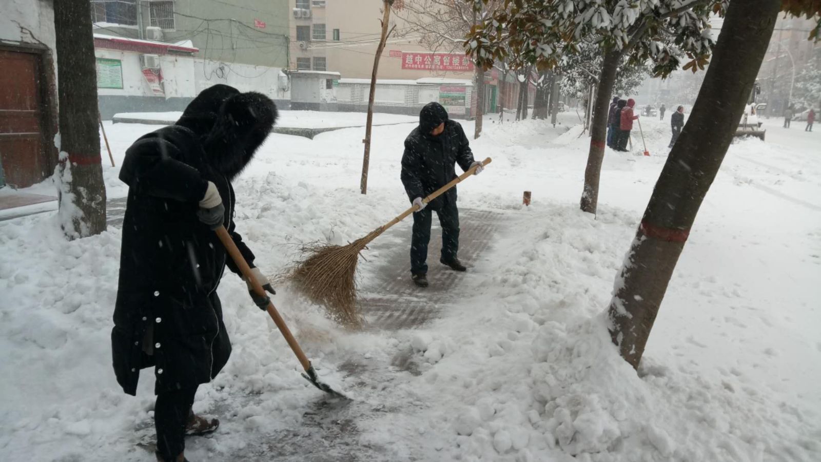 “能盡自己的能力為大家做點事,我覺得非常開心。”黨員志愿者張冰擦擦頭上融化的雪水說。“出門之前我還在擔心孩子上學路滑不滑,沒想到推門就看到你們已經將積雪清理了,而且在臺階處鋪上了硬紙,想得太周到了。”社區(qū)大媽肖四琴看到大家干活的場景,忍不住稱贊道。