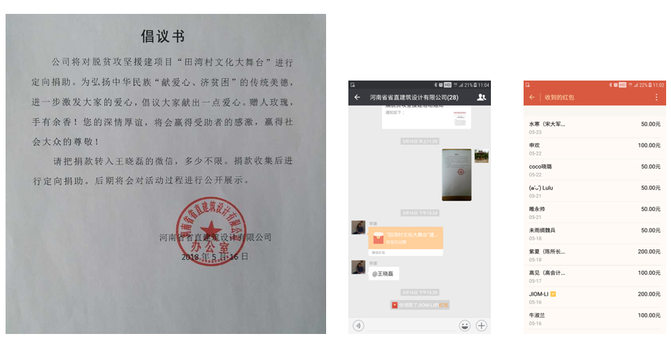 2018年4月20日,河南省工程勘察設(shè)計行業(yè)協(xié)會下發(fā)了《關(guān)于開展助力省廳對口幫扶村脫貧攻堅援建活動的通知》。通知主要精神:十九屆三中全會以后,黨中央對農(nóng)村工作提出了新的發(fā)展方向,習近平總書記提出了鄉(xiāng)村要實現(xiàn)“五個振興”。為貫徹落實習近平總書記“堅決打贏脫貧攻堅戰(zhàn)”的新要求,根據(jù)《國務(wù)院扶貧開發(fā)領(lǐng)導小組關(guān)于廣泛引導和動員社會組織參與脫貧攻堅的通知》(國開發(fā)【2017】12號)文件精神,增強責任擔當,結(jié)合自身專長,充分發(fā)揮行業(yè)協(xié)會優(yōu)勢,河南省工程勘察設(shè)計行業(yè)協(xié)會決定針對省廳對口幫扶的信陽市商城縣河鳳橋鄉(xiāng)田灣村和駐馬店上蔡縣邵店鄉(xiāng)上崗村開展脫貧攻堅援建活動,并倡議熱心公益事業(yè)的會員單位積極參與,奉獻愛心。