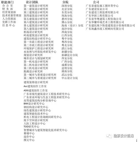 公司下設(shè)綜合設(shè)計(jì)分院、工程勘察分院、建筑創(chuàng)作室、工作室、工程咨詢管理、施工圖設(shè)計(jì)文件審查、工程檢測、市政、景觀、規(guī)劃、節(jié)能等多個業(yè)務(wù)部門和分支機(jī)構(gòu)。組織結(jié)構(gòu)圖如下: