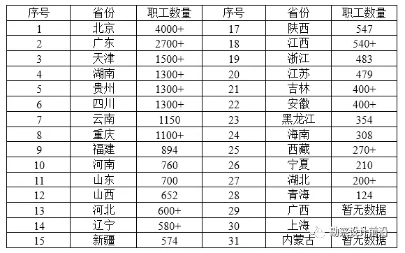 全國省級建筑院職工數(shù)量統(tǒng)計(jì)表: