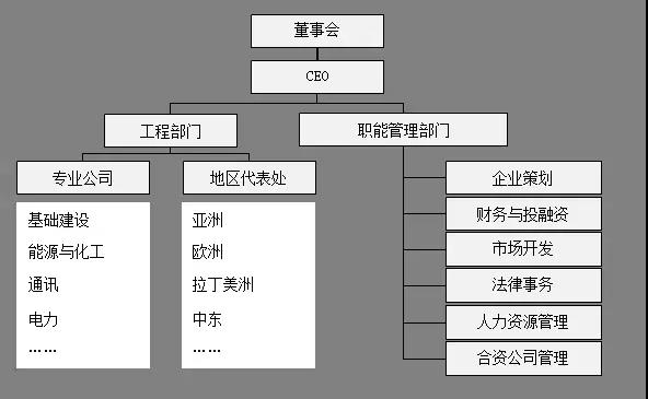 圖2:全方位的國際工程公司通常是跨行業(yè)、跨地區(qū)的集團(tuán)公司,具體的業(yè)務(wù)運營單位多是專業(yè)公司