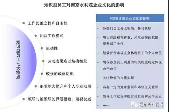 內(nèi)部環(huán)境主要從企業(yè)的發(fā)展及演變歷程、企業(yè)家的精神、知識型員工的特點等維度進行分析,以知識型員工對S設計院企業(yè)文化的影響為例: