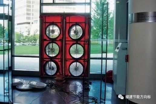 如果你們正在建設(shè)被動(dòng)房,相信你們一定遇到檢測這個(gè)難題。被動(dòng)房氣密性檢測的標(biāo)準(zhǔn)是要實(shí)現(xiàn)室內(nèi)外壓差50Pa下的換氣次數(shù)值做到0.6.對于一個(gè)小型建筑來講,用一臺(tái)風(fēng)機(jī)可以輕松實(shí)現(xiàn)這個(gè)目標(biāo),但是中國的建筑物體積非常龐大,想達(dá)到預(yù)定室內(nèi)外壓差值,必須鼓更多的風(fēng)量,也就是要配置更多的電風(fēng)扇。按照經(jīng)驗(yàn),一臺(tái)電風(fēng)扇的風(fēng)量在10000m3,左右,檢測3000平米的建筑物沒問題,超過這些數(shù)字,比如幾萬平米的建筑,那么就需要上更多的檢測設(shè)備。這一塊相信國人還不是很清楚。因?yàn)榘凑债?dāng)前的一些被動(dòng)房示范工程來看,多數(shù)以抽檢某幾個(gè)房屋合格為手段,很少有全部檢測整棟大樓的案例。下面我們帶來國外的一系列建筑整體氣密性檢測的案例,讓大家開開眼,看看外國人是怎么看待檢測這回事的!