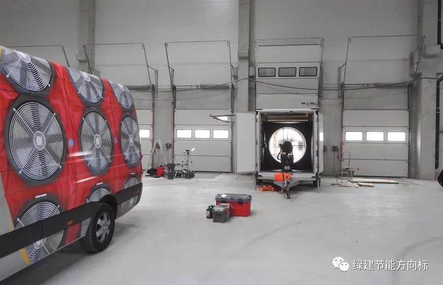 國外對于綠色建筑(DGNB)認(rèn)證和被動(dòng)房認(rèn)證都是有一個(gè)建筑整體氣密性檢測來驗(yàn)收房子,如下圖所示: