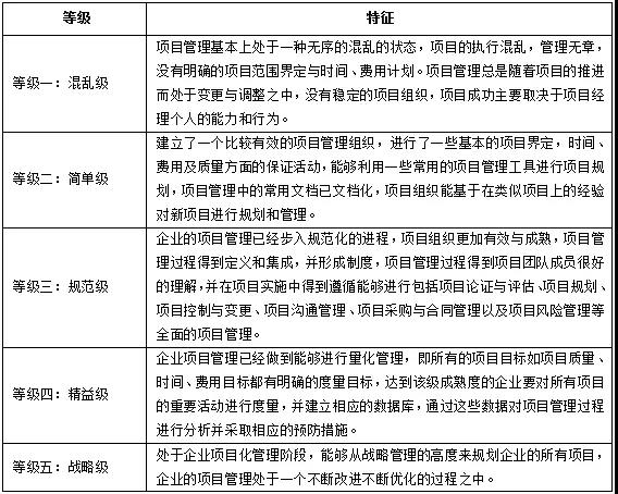 根據(jù)項目管理理論,企業(yè)的項目管理能力可以分為五個等級。