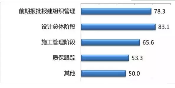 從各相關方對各階斷建筑師及團隊發(fā)揮的作用評價來看,前期報批報建組織管理、設計總體階段評價相對較高,這是因為建筑師的職業(yè)服務原本就包含了建筑方案設計、初步設計、施工圖設計這三個階段的工作。相對而言,后期的施工管理階段、質保跟蹤等服務評價較低,一方面是由于試點項目中,大部分項目還未涉及到后期施工管理服務,另一方面也顯示出各相關方對建筑師在后期管理上的擔憂。