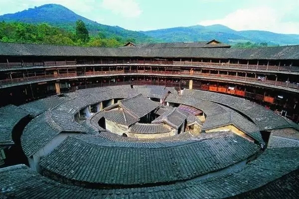 福建土樓,包括閩南土樓和一部分客家土樓,總數(shù)約三千余。通常是指閩西南獨(dú)有約利用不加工的生土,夯筑承重生土墻壁所構(gòu)成的群居和防衛(wèi)合一的大型樓房,形如天外飛碟,散布在青山綠水之間。主要分布地區(qū)以中國福建西南山區(qū),客家人和閩南人聚居的福建、江西、廣東三省交界地帶.福建土樓是世界獨(dú)一無二的大型民居形式。
