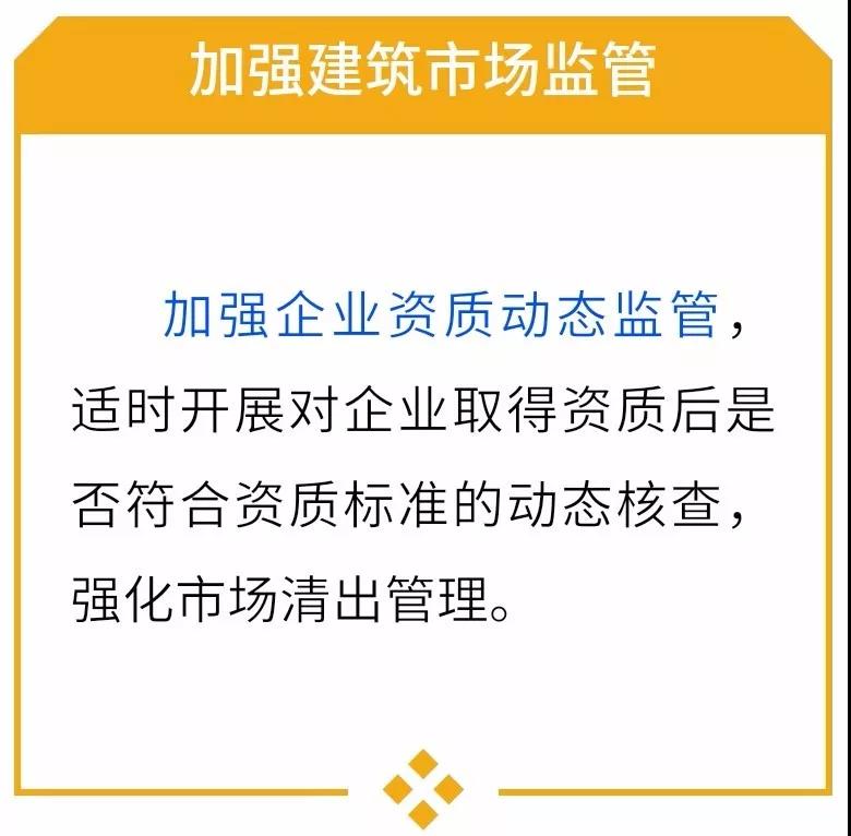 (六)加強建筑市場監(jiān)管。繼續(xù)加大對資質(zhì)資格申報弄虛作假、發(fā)生質(zhì)量安全責(zé)任事故、建筑工程施工轉(zhuǎn)包違法分包等違法違規(guī)行為和投訴舉報案件的查處力度。依托全國建筑市場監(jiān)管公共服務(wù)平臺,加強企業(yè)資質(zhì)動態(tài)監(jiān)管,適時開展對企業(yè)取得資質(zhì)后是否符合資質(zhì)標準的動態(tài)核查,強化市場清出管理。