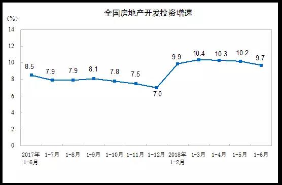 2018年1~6月份,全國房地產(chǎn)開發(fā)投資55531億元,同比名義增長9.7%,增速比1~5月份回落0.5個百分點。其中,住宅投資38990億元,增長13.6%,增速回落0.6個百分點。住宅投資占房地產(chǎn)開發(fā)投資的比重為70.2%。