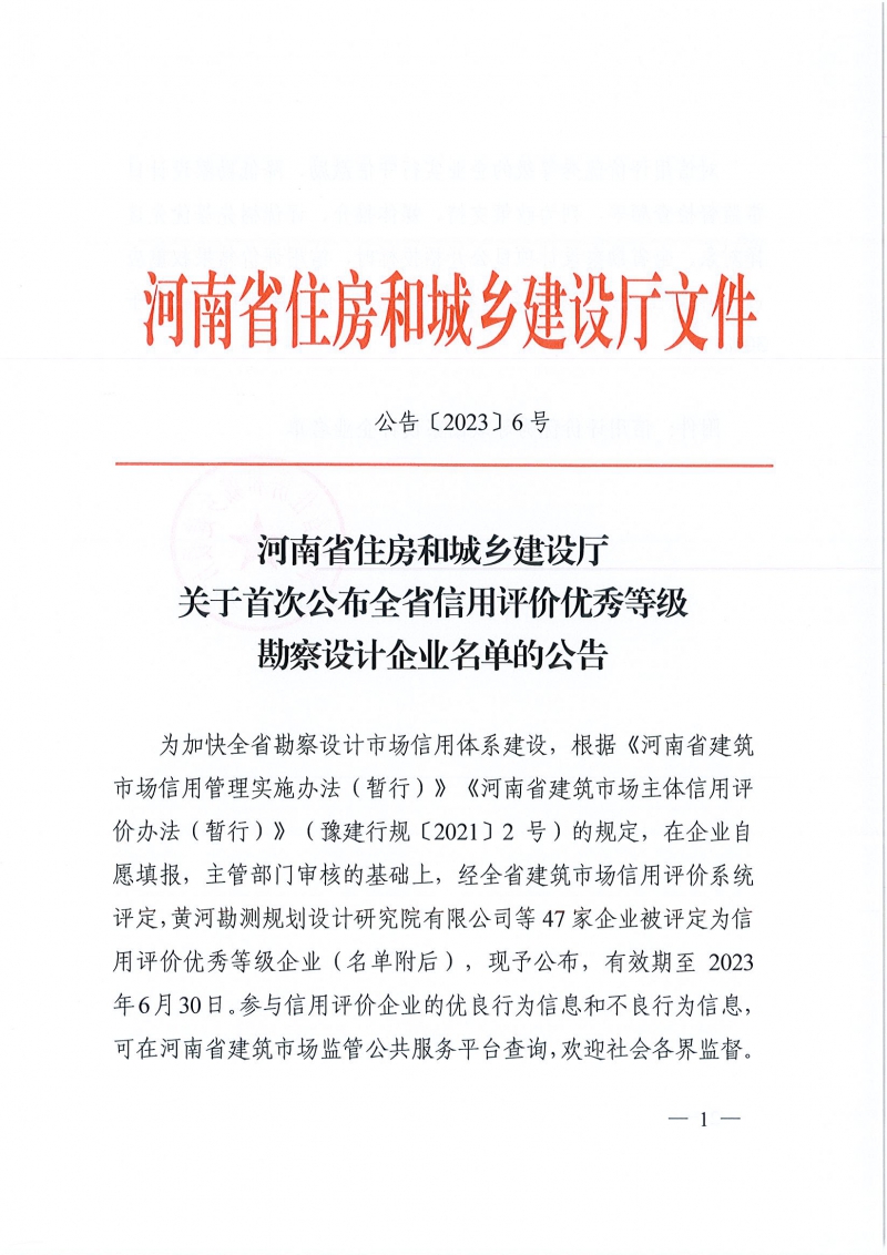 省住建廳關(guān)于首次公布全省信用評(píng)價(jià)優(yōu)秀等級(jí)勘察設(shè)計(jì)企業(yè)名單的公告