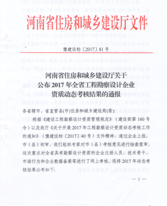 省住建廳公布2017年全省工程勘察設(shè)計(jì)企業(yè)資質(zhì)動(dòng)態(tài)考核結(jié)果