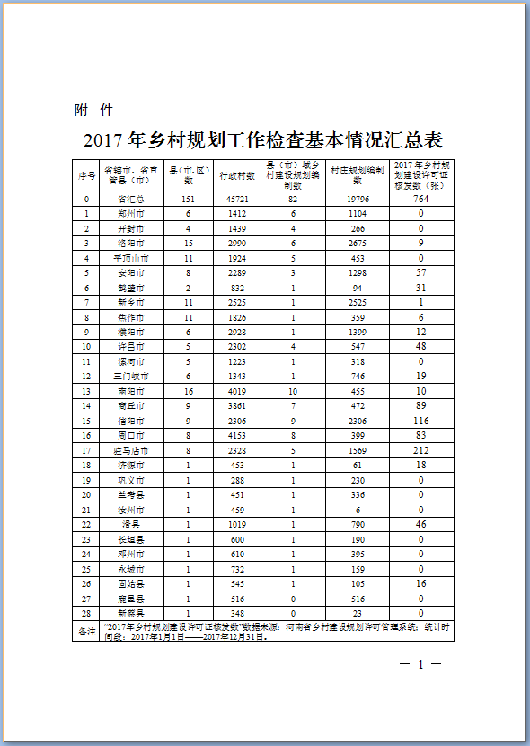附件:2017年鄉(xiāng)村規(guī)劃工作檢查基本情況匯總表