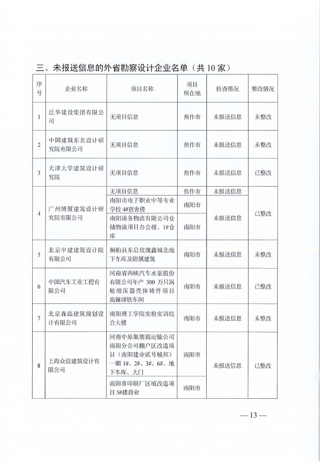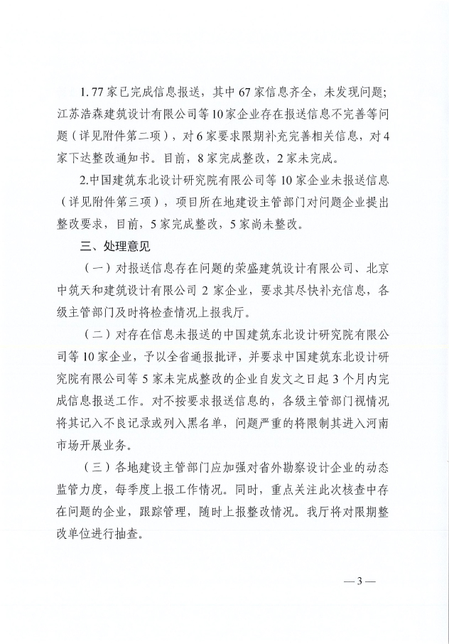 省住建廳關(guān)于2018年開展勘察設(shè)計企業(yè)跨區(qū)域承攬業(yè)務(wù)監(jiān)督管理專項檢查情況的通報
