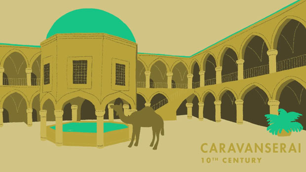商旅驛站曾經(jīng)遍布中東到中亞的廣闊地域,中間寬闊的中庭為駝馬們提供了足夠的休息空間。