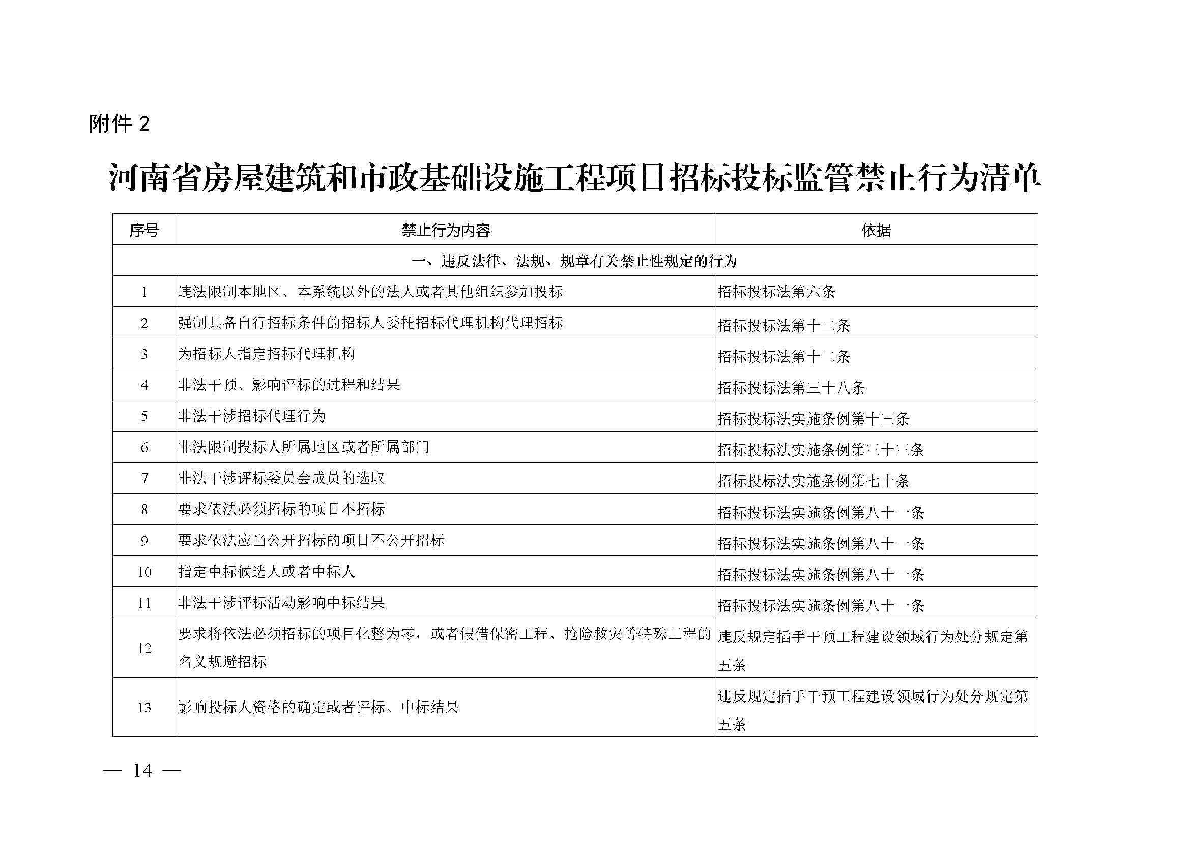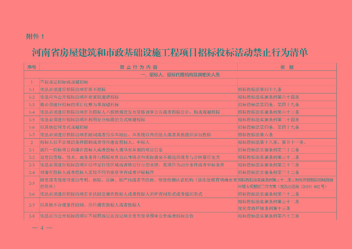 省住建廳關(guān)于印發(fā)《河南省房屋建筑和市政基礎(chǔ)設(shè)施工程項目招標投標監(jiān)管禁止行為清單》《河南省房屋建筑和市政基礎(chǔ)設(shè)施工程項目招標投標活動禁止行為清單》的通知