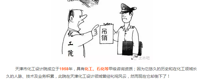 2016-08-01甲方2乙方 因受天津大爆炸案牽連,近日住建部正式公布了對(duì)天津市化工設(shè)計(jì)院的處罰決定(網(wǎng)址:http://www.mohurd.gov.cn/wjfb/201607/t20160715_228167.html):吊銷(xiāo)化工石化醫(yī)藥行業(yè)設(shè)計(jì)甲級(jí)資質(zhì)!