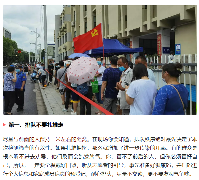 全員核酸檢測(cè)7月31日,鄭州市新冠肺炎疫情防控指揮領(lǐng)導(dǎo)小組辦公室發(fā)布通告,迅速開展全員核酸檢測(cè)。核酸檢測(cè)過程中,我們應(yīng)該注意哪些問題?近日,南京全程參與檢測(cè)點(diǎn)協(xié)調(diào)組織的一個(gè)志愿…