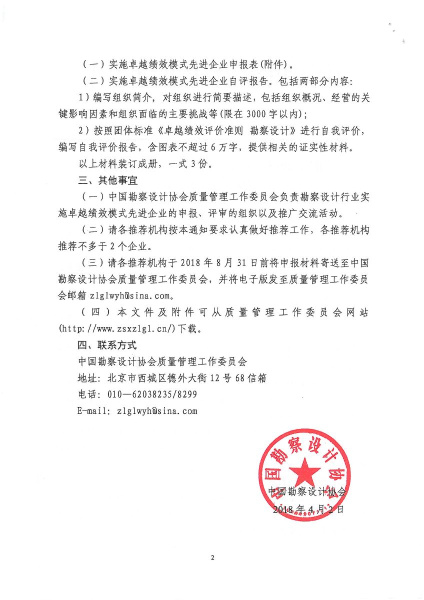 協(xié)會關(guān)于轉(zhuǎn)發(fā)中勘協(xié)《關(guān)于推薦2018年勘察設(shè)計行業(yè)實(shí)施卓越績效模式先進(jìn)企業(yè)的通知》的通知