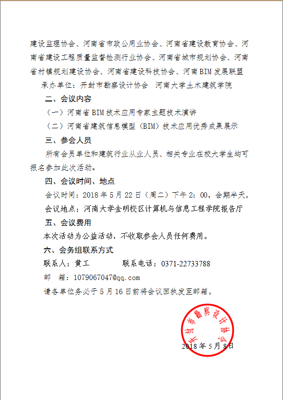 開封市勘察設(shè)計(jì)協(xié)會(huì)關(guān)于舉辦“河南省建筑信息模型(BIM)技術(shù)應(yīng)用專題講座和優(yōu)秀成果展示(開封站)活動(dòng)”的通知