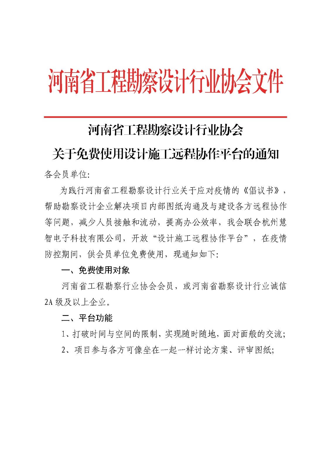 省協(xié)會關(guān)于免費使用設(shè)計施工遠(yuǎn)程協(xié)作平臺的通知