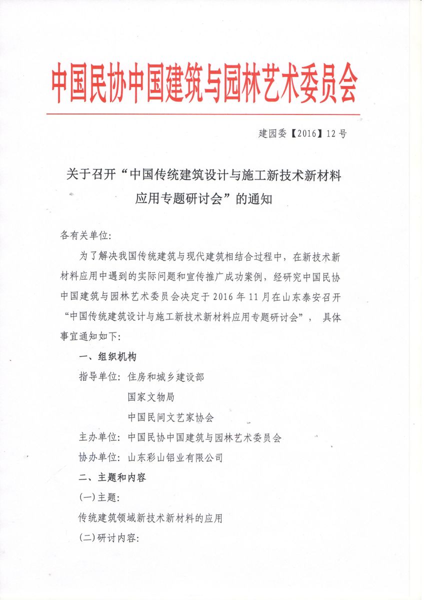 關(guān)于召開(kāi)“中國(guó)傳統(tǒng)建筑設(shè)計(jì)與施工新技術(shù)新材料應(yīng)用專題研討會(huì)”的通知