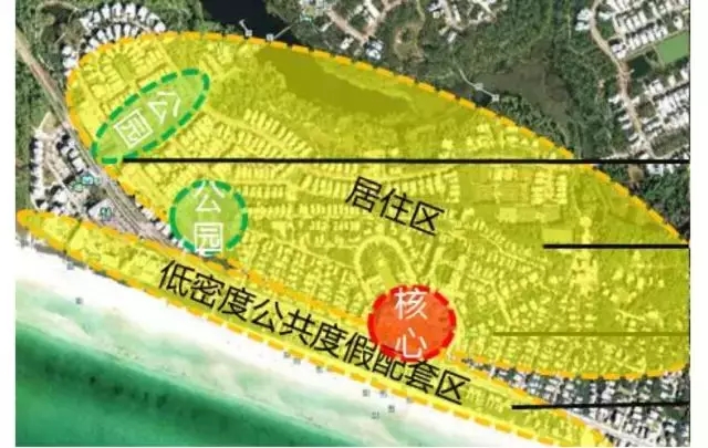 佛羅里達州Seaside小鎮(zhèn)始建于1980年,是位于郊區(qū)的濱海居住度假小鎮(zhèn),被時代周刊列為美國近十年“十大設(shè)計成就之一”,也是開放型社區(qū)首個應用者。