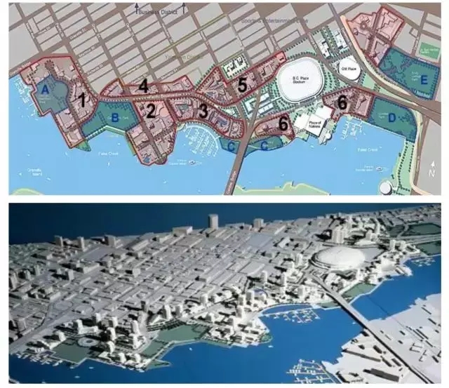 (3)城市公共休閑區(qū):在社區(qū)與森林公園之間興建城市公共休閑地帶,包括國家廣場世界最大的氣撐式圓頂體育館、溫哥華新中心圖書館、科學世界中心等,形成區(qū)域標識,建立與城市的聯(lián)系;