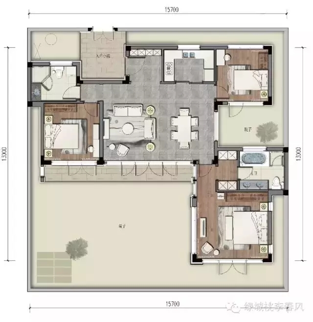 •圍合式庭院布局,推窗見景,敞闊院落可自由發(fā)揮業(yè)主喜好;