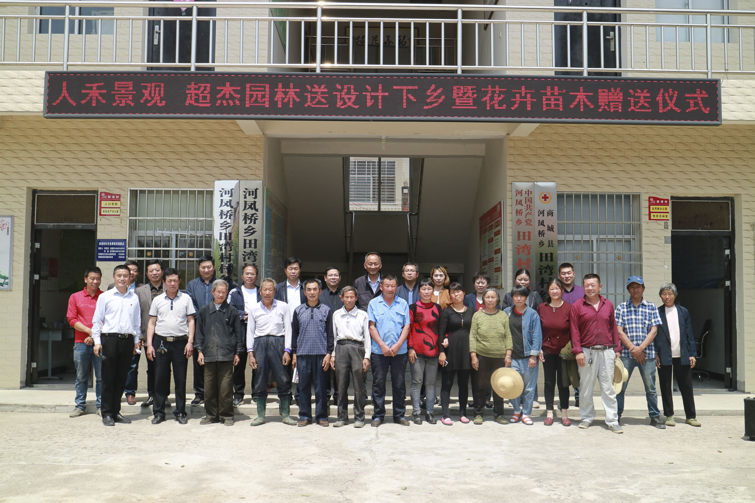 首先,郭風(fēng)春副廳長(zhǎng)一行在信陽(yáng)市城市管理執(zhí)法局局長(zhǎng)張立英,商城縣副縣長(zhǎng)程功言,商城縣紅十字會(huì)會(huì)長(zhǎng)盧慶,商城縣住建局穆正松局長(zhǎng)以及河鳳橋鄉(xiāng)黨委書記程欣然的陪同下,出席了“人禾景觀超杰園林送設(shè)計(jì)下鄉(xiāng)暨花卉苗木捐贈(zèng)儀式”。人禾景觀規(guī)劃設(shè)計(jì)河南有限公司和河南超杰園林設(shè)計(jì)工程有限公司是在省住房城鄉(xiāng)建設(shè)廳的組織發(fā)動(dòng)下,響應(yīng)黨和國(guó)家的號(hào)召,積極關(guān)心支持田灣村的脫貧攻堅(jiān)工作和美麗鄉(xiāng)村建設(shè)。在3月底為田灣村進(jìn)行義務(wù)園林化規(guī)劃設(shè)計(jì)的基礎(chǔ)上,今天又無(wú)償捐獻(xiàn)了1200株百日紅,730株櫻花,70斤的格桑花籽和月季等花卉苗木,總價(jià)值約6萬(wàn)元。儀式上,郭風(fēng)春副廳長(zhǎng)和程功言副縣長(zhǎng)為兩個(gè)公司頒發(fā)了捐贈(zèng)證書,并對(duì)他們的善舉進(jìn)行了勉勵(lì)。在簡(jiǎn)短儀式后,郭風(fēng)春副廳長(zhǎng)和大家一起在田灣新村主干道邊栽下了百日紅。