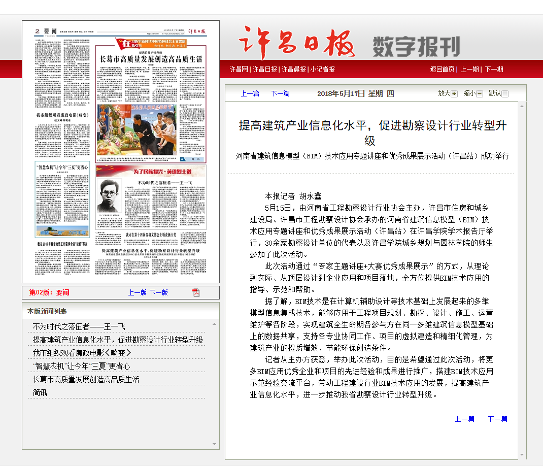 許昌日報消息:提高建筑產(chǎn)業(yè)信息化水平,促進勘察設(shè)計行業(yè)轉(zhuǎn)型升級