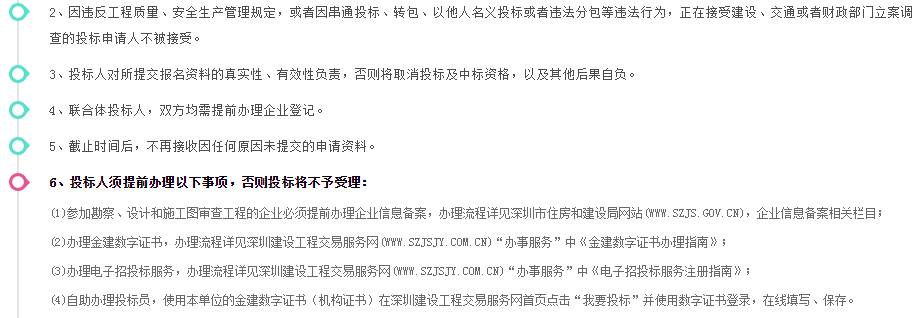 | 其他資質(zhì): | 1、工程設(shè)計(jì)建筑行業(yè)(建筑工程)專業(yè)甲級(jí)或以上資質(zhì); 2、設(shè)計(jì)單位或聯(lián)合體單位之一近3年(2015年1月1日至今)參與建筑面積不少于50萬平方米的房屋建筑工程的類似項(xiàng)目業(yè)績,在建或已建成的項(xiàng)目,提供中標(biāo)通知書、設(shè)計(jì)合同關(guān)鍵頁及簽字蓋章頁; 3、執(zhí)行建筑師管理團(tuán)隊(duì):為獨(dú)立法人資格; 4、項(xiàng)目負(fù)責(zé)人資格:具有注冊(cè)一級(jí)建筑師執(zhí)業(yè)資格。 5、本項(xiàng)目接受聯(lián)合體投標(biāo),聯(lián)合體單位不得超過3家,除執(zhí)行建筑師管理團(tuán)隊(duì)外,聯(lián)合體單位均需具備工程設(shè)計(jì)建筑行業(yè)(建筑工程)專業(yè)甲級(jí)或以上資質(zhì),聯(lián)合體牽頭設(shè)計(jì)單位必須具有工程設(shè)計(jì)建筑行業(yè)(建筑工程)專業(yè)甲級(jí)或以上資質(zhì),且注冊(cè)地必須位于深圳市,或在深圳市設(shè)有分支機(jī)構(gòu)。 備注:本次采用電子招投標(biāo)形式,請(qǐng)各投標(biāo)人根據(jù)招標(biāo)文件要求編制投標(biāo)文件及辦理相關(guān)數(shù)字證書,投標(biāo)文件的遞交應(yīng)由聯(lián)合體牽頭單位在深圳市建設(shè)工程交易服務(wù)網(wǎng)遞交,且必須在深圳市住房和建設(shè)局完成企業(yè)信息備案及辦理數(shù)字證書,境內(nèi)外企業(yè)均必須在深圳市建設(shè)工程交易服務(wù)網(wǎng)進(jìn)行備案(企業(yè)信息登記)(www.szjsjy.com.cn)。請(qǐng)各投標(biāo)人提前辦理好企業(yè)信息備案及相關(guān)數(shù)字證書。 | ||