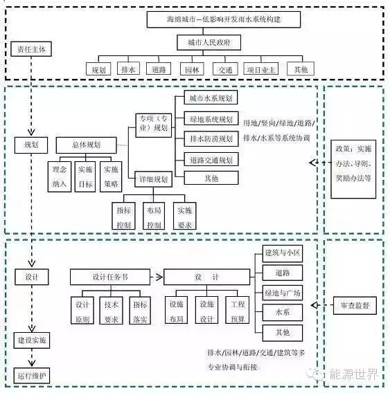 傳統(tǒng)的城市建設(shè)過(guò)程中,對(duì)于水的考慮主要圍繞著“給水”和“排水”兩個(gè)環(huán)節(jié),在一定程度上其設(shè)計(jì)規(guī)劃是線性和平面的,但正如海綿是三維立體的,“海綿城市”的規(guī)劃建設(shè)自然也是立體工程。雖然“海綿城市”概念提出針對(duì)的是城市的“水”問(wèn)題,但由于水本身涉及到生產(chǎn)生活的各個(gè)方面,“海綿城市”的開(kāi)發(fā)建設(shè)注定是一個(gè)立體的系統(tǒng)工程。根據(jù)《海綿城市建設(shè)技術(shù)指南》,海綿城市建設(shè)涉及到城市水系、綠地系統(tǒng)、排水防澇、道路交通等多領(lǐng)域規(guī)劃,同時(shí)需要政府規(guī)劃、排水、道路、園林、交通等部門與地產(chǎn)項(xiàng)目業(yè)主之間協(xié)調(diào)合作,以及排水、園林、道路、交通、建筑等多專業(yè)領(lǐng)域協(xié)作。城市改造建設(shè)牽一發(fā)而動(dòng)全身,一般周期又相對(duì)較長(zhǎng),這就決定了海綿城市的建設(shè)需要詳盡合理的頂層設(shè)計(jì)。