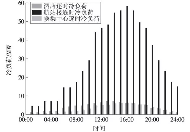 國內(nèi)某機(jī)場規(guī)劃建設(shè)1 座天然氣分布式能源站,主要滿足機(jī)場近期的主要冷、熱負(fù)荷及部分電力負(fù)荷需求。該機(jī)場定位為具有一定國際競爭力的大型樞紐機(jī)場,總建筑面積為航站樓56 萬m2、機(jī)場酒店10 萬m2、機(jī)場換乘中心8 萬m2,共74 萬m2。本文結(jié)合該項(xiàng)目設(shè)計(jì)案例,從負(fù)荷分析、設(shè)備選型及運(yùn)行經(jīng)濟(jì)性等角度對機(jī)場采用分布式能源系統(tǒng)的設(shè)計(jì)原則及方案進(jìn)行初步探索。