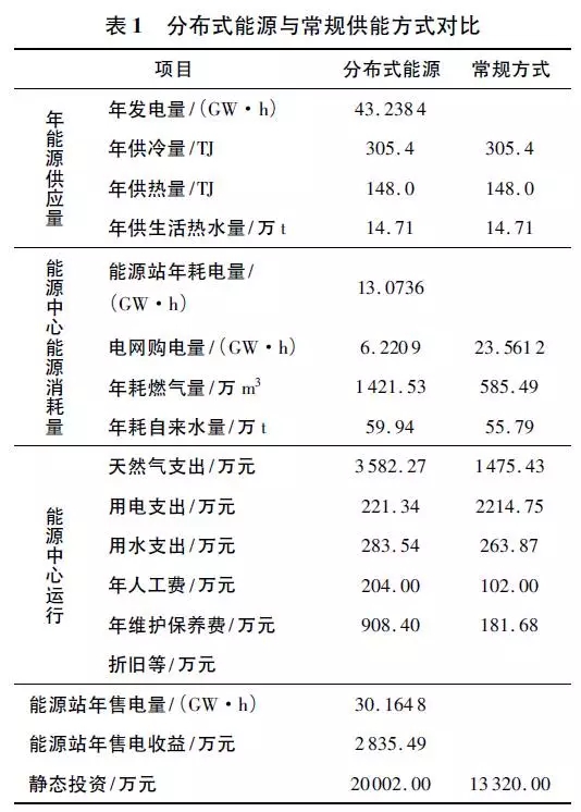 在機(jī)場總供能面積為74 萬m2、年供冷量、年供熱量、年供生活熱水量相同的條件下,分析對比分布式能源供能與機(jī)場常規(guī)供能方式的技術(shù)經(jīng)濟(jì)性( 見表1) ,常規(guī)方式采用燃?xì)忮仩t+ 電制冷方式。